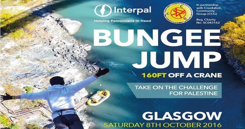 | Interpal and Crookston Community Group have organised a fundraising bunjee jump on 8th October 2016. We will be raising money for the Food Bank and Community Development Campaign to support families in Glasgow and Palestine that have known nothing but sadness and devastation throughout their lives. If you would like to participate as a volunteer and think you have what it takes to fundraise for those less fortunate then get in touch with Saira now on 07581154239. You must be a minimum of 16 years of age and no health concerns. | |||